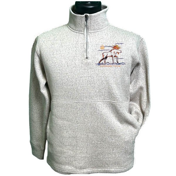 Adult 1/4 zip nantucket with pocket embroidery outline Moose and sunset