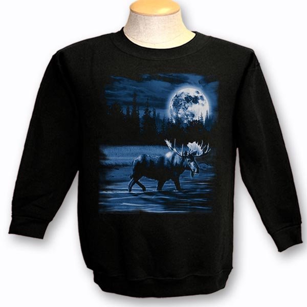 / ADULT CREWNECK SWEAT WITH MOOSE NIGHT SCENE & TOWN NAME