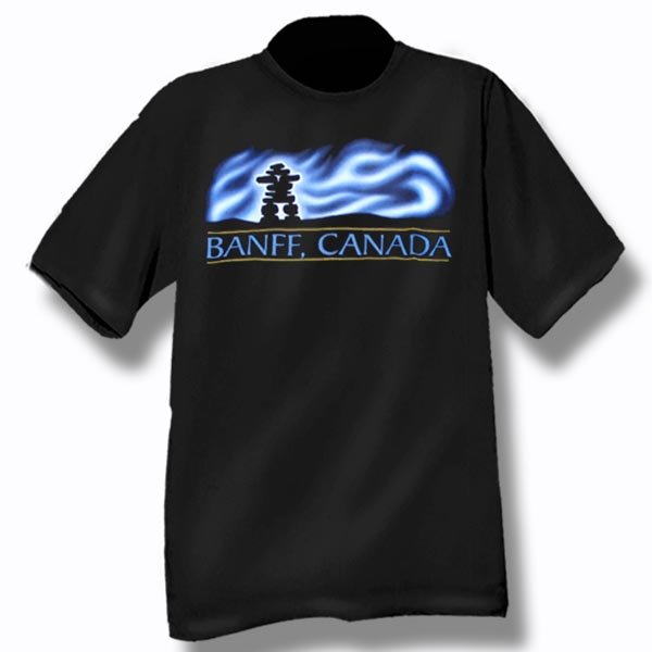 ADULT T-SHIRT WITH NORTHERN LIGHTS INUKSHUK &TOWN NAME