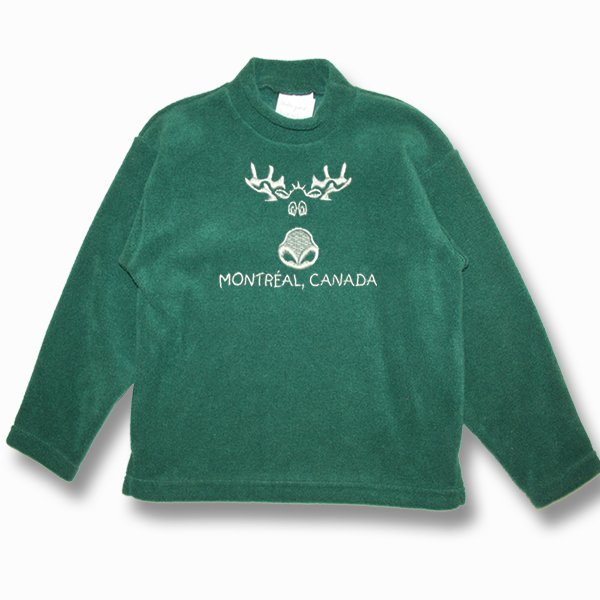 kid polar fleece pullover with cartoon moose embroidery designs with town name.