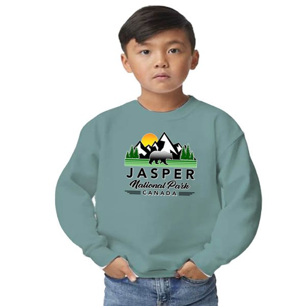 youth crewneck sweat 14 OZ with Bear & town name.50/50 poly/cotton. unisex. …