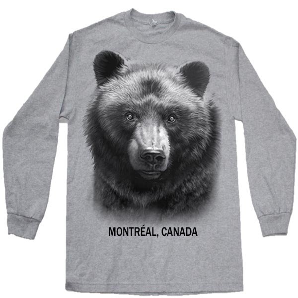 / Youth Long Sleeve T-Shirt with Black Bear Head Design with Town Name.