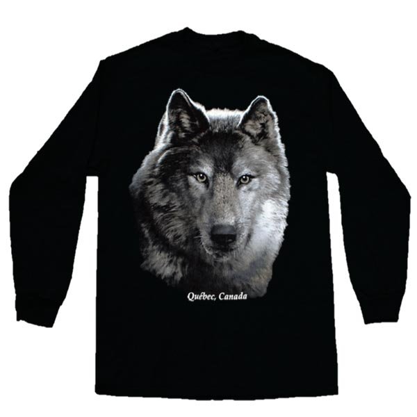 Youth long sleeve T-Shirt with Wolf Head on Black Design with Town Name. quantity